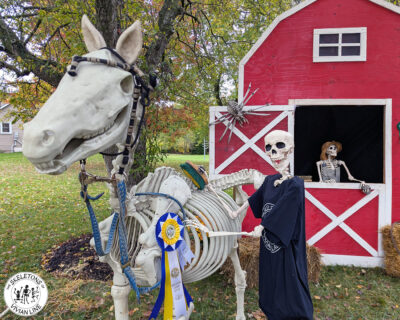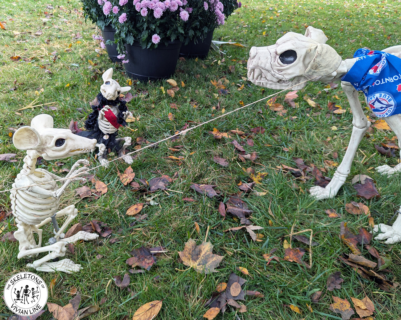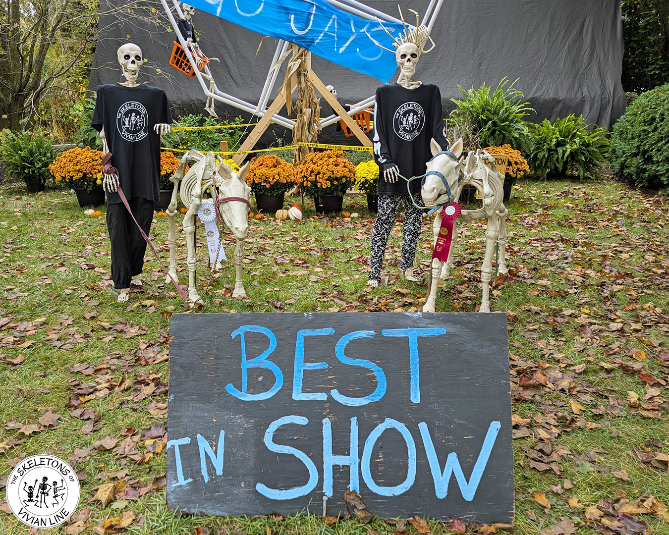 The Skeletons are showing off their boney pets to compete in the Best in Show Competition at the Skeleton Fall Fair.