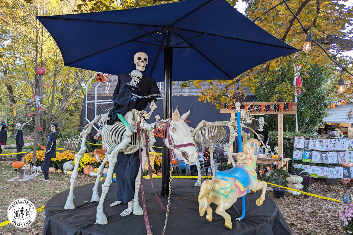 The Skeleton bones are shaking with excitement at the new carousel that was added to the fall fair today. Will our muscleless skeletons be able