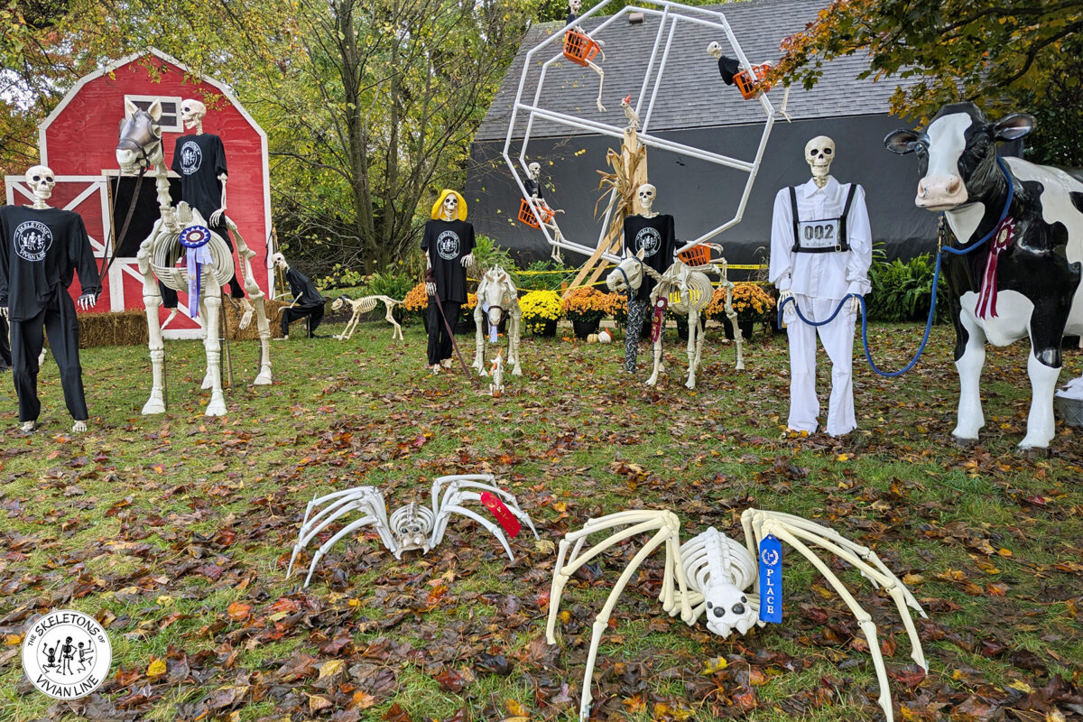 Fall Fair Fun continues today with the Skeletons and their boney pets. Not afraid of the rain, even the spiders came out to compete for