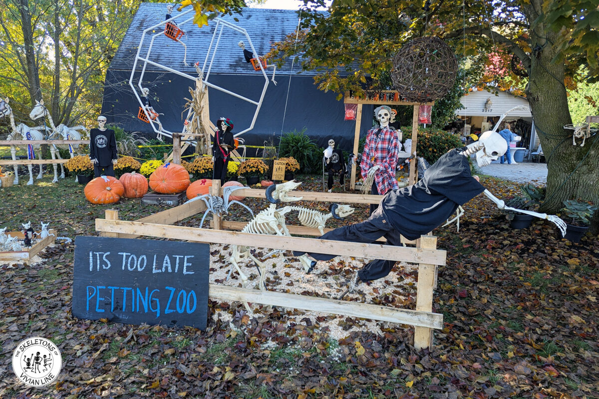 The 13 Days of Halloween Fun – continued on the weekend with the ‘It’s Too Late Petting Zoo’. Skeletons went for a walk to check
