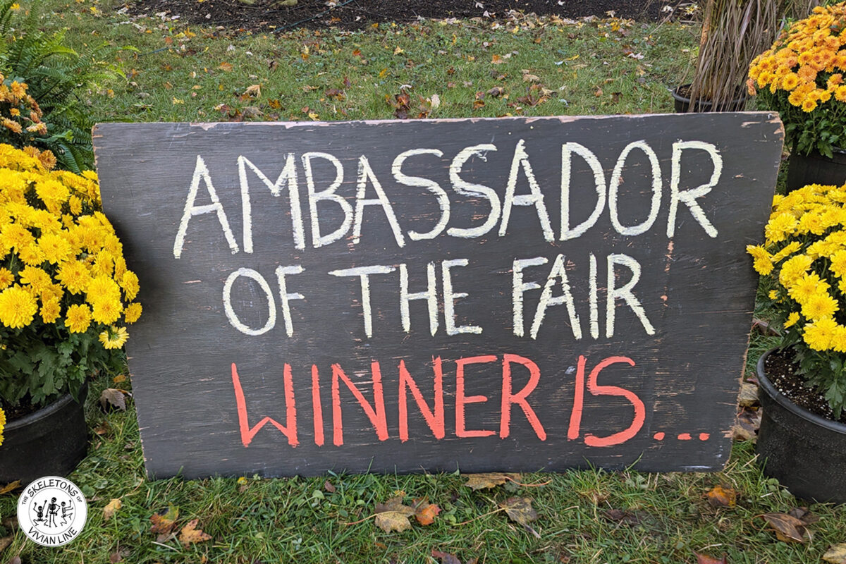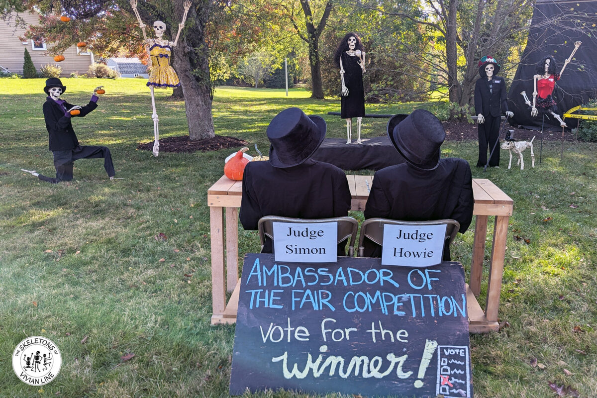 Every fall fair always begins with an Ambassador of the Fair competition. Which one of these five skeletons will win the coveted ‘Gold Pumpkin’ Prize